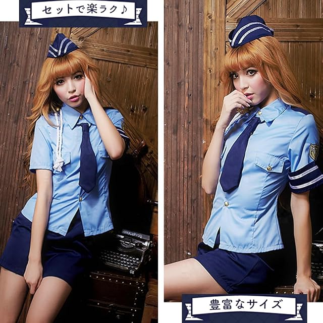 清潔感のあるサックスカラーとミニタイトスカートのセクシーさがマッチした大人気ポリス衣装!