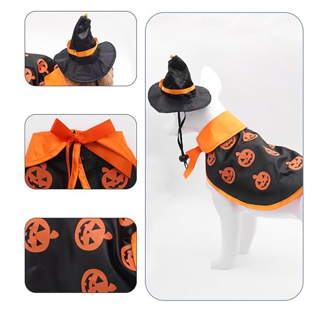YBGGJO 犬 猫用 ハロウィン 帽子 マント コスチューム コスプレ ハロウィン ペット服 かわいい かぼちゃ ケープ 魔女帽子 犬 猫用 仮装 写真撮影 (A)