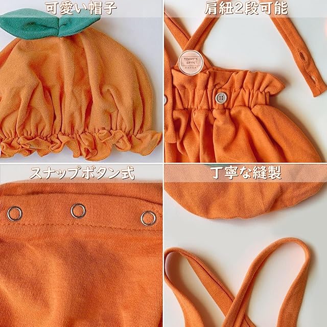 商品名:[VNGOLERRY] ベビーロンパース オーバーオール かぼちゃ ハロウィン パンツ サロペット カボチャ ベビー服 帽子付き コスプレ 赤ちゃん 女の子 男の子 コスチューム 衣装 仮装 記念写真 かわいい 70 80 90 (かぼちゃ, 80)