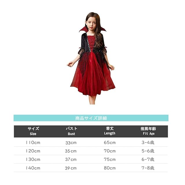 [Limspace] ハロウィン キッズコスチューム 子供 吸血鬼 コスプレ 女の子 プリンセス ドレス ハロウィン ウィッチ ドレス コスチューム キッズコスチューム コスプレ衣装 魔女 仮装 吸血鬼 ヴァンパイア風 巫女 ウィッチ 変身 子供用 (120CM) [並行輸入品]