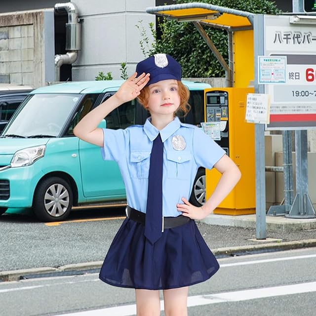[Formemory] ポリス コスプレ 子供 キッズコスチューム 女の子 ポリス コスプレ衣装 子供 女の子 可愛い お巡りさん ハロウィン 衣装 イベント パーティー 文化祭 舞台 (120)
