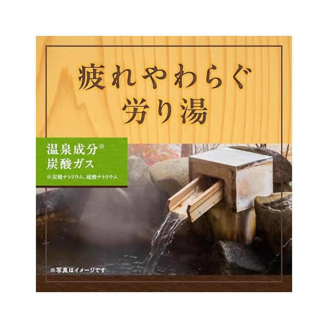温泉成分(炭酸ナトリウム、硫酸ナトリウム)と炭酸ガスが温浴効果を高め、血行を促進。4種の保湿成分配合。