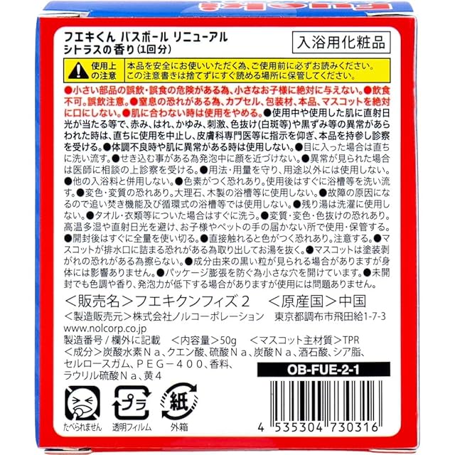 商品名:フエキくん バスボール リニューアル シトラスの香り 50g 1回分