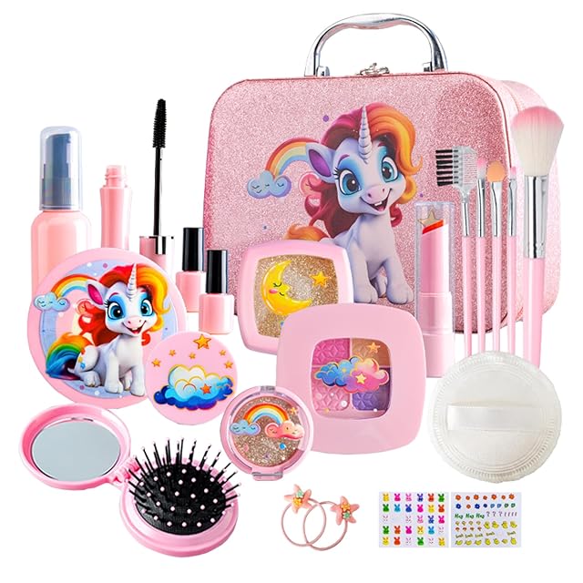 OTONOPI メイクおもちゃ 化粧品おもちゃ コスメセット メイクアップおもちゃ メイクボックス ユニコーン 収納トランク 色が付けない 子供用 女の子 22PCS なりきり ごっこ遊び おもちゃ 誕生日 クリスマス プレゼント 6歳以上