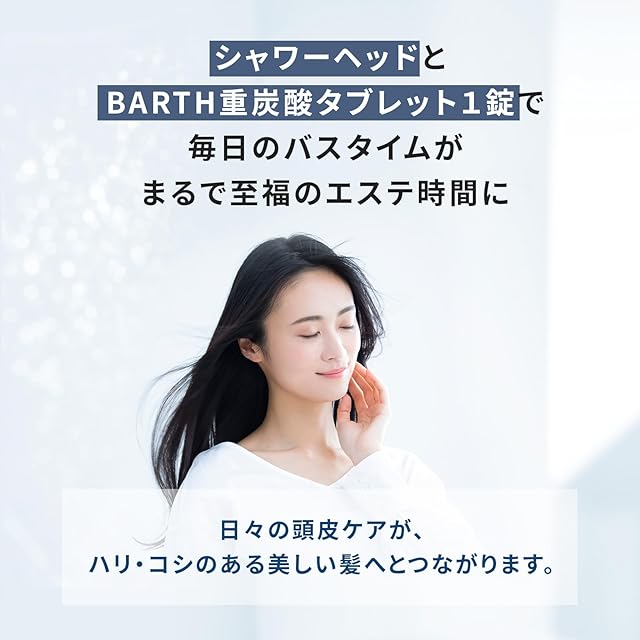 ・ドイツの希少な泉質「中性重炭酸泉」から着想を得た「薬用BARTH中性重炭酸入浴剤」の独自技術を用いて開発。重炭酸イオン*¹を長く湯中に溶け込ませる技術はそのままに、美容保湿成分(コラーゲン、ヒアルロン酸)配合の入浴料を実現しました。まるで美容液のようなお湯が全身を包み込み、肌にうるおいとハリを与えます。 ・別売りのシャワーヘッド(重炭酸バブルシャワー)にセットするするだけ。毎日お手軽に重炭酸*¹美容液シャワーが楽しめます。 *¹ 基剤:炭酸水素Na、炭酸Na