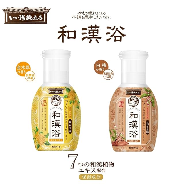 冷えや疲れによる不調を緩和したい方に。</b><br>いい湯旅立ち 和漢浴 にごり入浴液。</font><br>