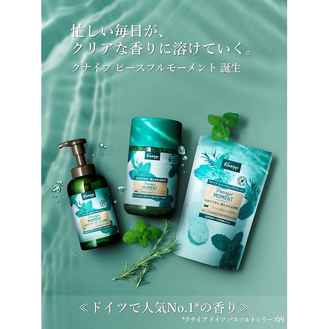 忙しい毎日が、クリアな香りに溶けていく。みずみずしく爽やかな香りに包まれながら、ゆったり心満たされるバスタイムを。クナイプ ピースフルモーメントシリーズ