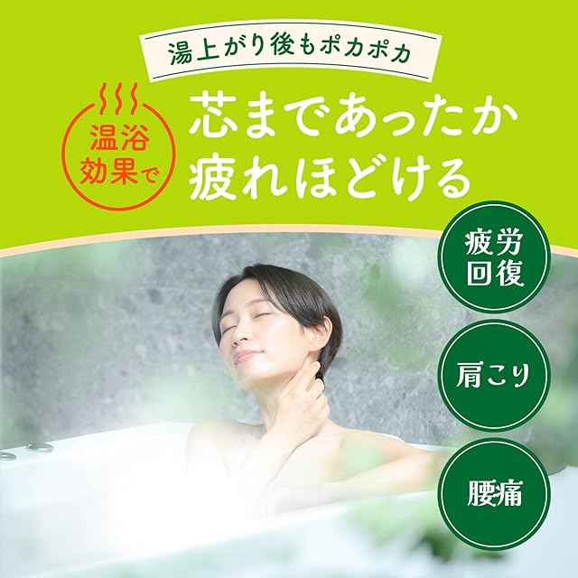 有効成分が温浴効果を高め血行を促進し、肩こりや腰痛を和らげます。薬用入浴剤。