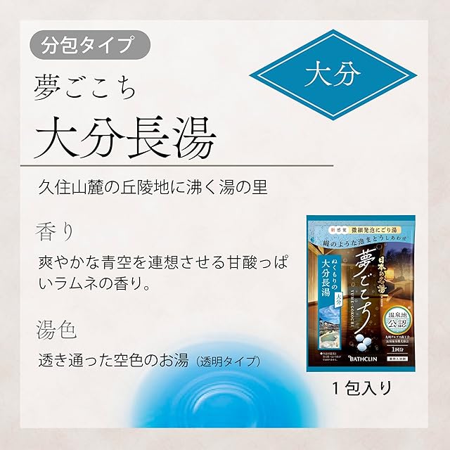 商品名:日本の名湯【薬用入浴剤】夢ごこち 40g×5包 微細発泡 炭酸温泉タイプ バスクリン 分包アソート 入浴剤
