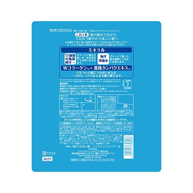 商品名:海のうるおい藻 うるおいケア リンスインシャンプー 大容量 詰め替え 1400ml 海藻 保湿
