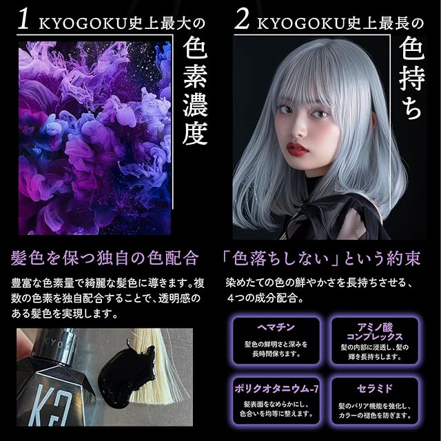 ✨【ブリーチカラーや黄ばみの防止に!】Kyogoku カラーシャンプー シリーズは、ヘアカラー後の色落ち、色持ちが気になる方や、ブリーチした髪の毛の黄ばみを消したい人の為のムラサキシャンプーです。色素がとても濃く、しっかり髪に浸透し、ヘアカラーに染まる。また、色落ち防止ダブルファインテイント処方・2種類の染料を重ねることで、髪の毛のくすみをなくし、ツヤや透明感を大切にしています。カラーシャンプー、紫シャンプーにおける最大限の色表現と希望色を長く、楽しんで頂けるような処方を追求したムラシャンです。*トリートメントではありません。