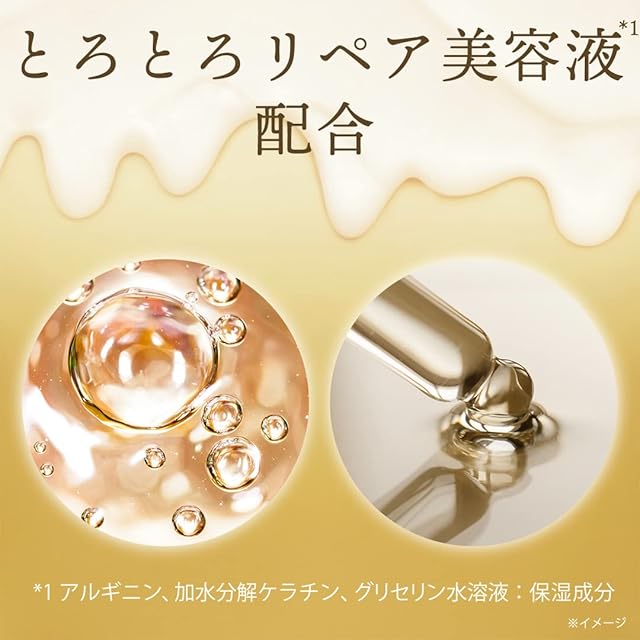 とろとろリペア美容液成分*¹配合 *¹アルギニン、加水分解ケラチン、グリセリン水溶液:保湿成分