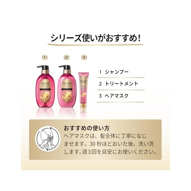 * 1 パンテノール、パンテニルエチル(浸透性保湿成分)。* 2 カラーシャイン&リペアヘアマスクを含むシリーズ使いによる