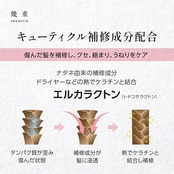 【髪質改善のための結合型補修成分】補修成分が髪に結合し、単なる吸着ではなく、継続的な髪質改善を実現します。長期的に健康な髪を維持できるように設計されています。