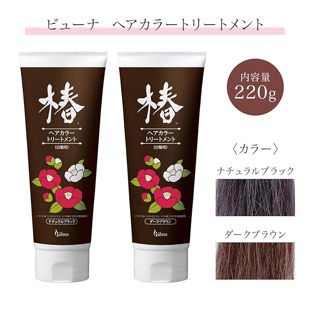 コモライフ ビューナ ヘアカラートリートメント ダークブラウン (220g) ブラシ付 カラートリートメント 白髪染め 髪染め 白髪ケア 白髪 染め カラーリング 髪 傷んだ髪 補修 放置時間約5分 ボリュームアップ ハリ コシ アップ 椿オイル ケラチン シルク ダメージケア ツヤ うるおい 【日本製】