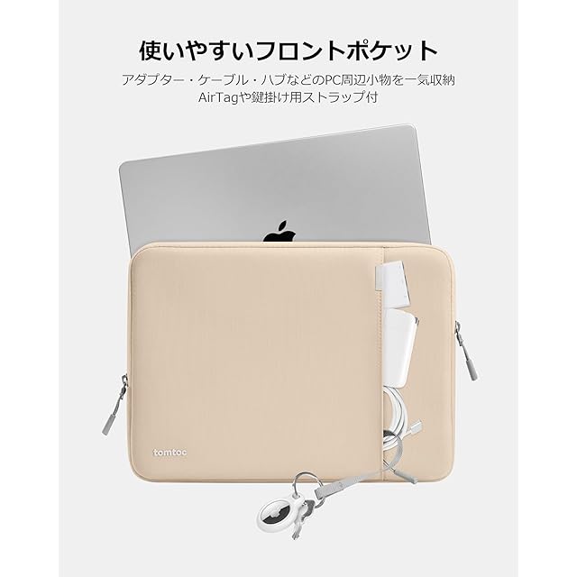 【使いやすいフロントポケット】パソコン以外も持ち回る必需品が必ずあります。ジッパー型フロントポケットはKindle、アダプター、ケーブル、マウス、ハブ、USBメモリ、イヤホンなどのPC周辺小物を一気に収納できます。AirTagや鍵掛け用ストラップ付。この軽量でコンパクトなラップトップ保護ケースは他のショルダーバッグ、バックパックに簡単に収納できます。