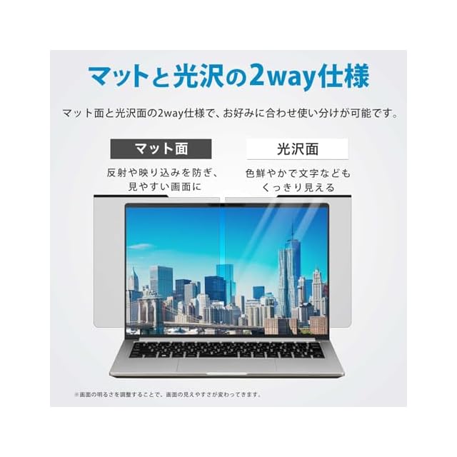★両面で使える:片面は反射防止(アンチグレア)機能があるので、太陽光や蛍光灯からの反射を抑え、映り込みを低減します、もう片面は光沢仕上げで写真や動画を鮮やかに表示させることができます。