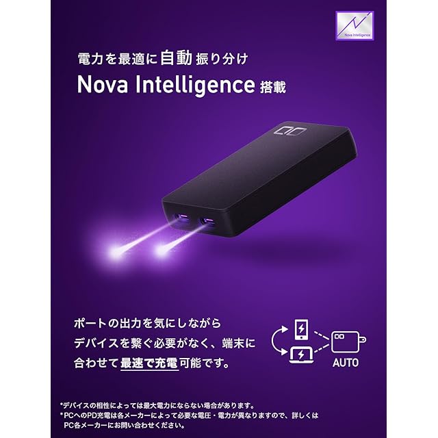 【CIO独自制御技術 NovaIntelligenceを搭載】端末に合わせて電力を自動で調整してくれる為、ポートの出力を気にしながらデバイスを繋ぐ必要がなく、同時充電時もストレスなく快適に充電が可能です。