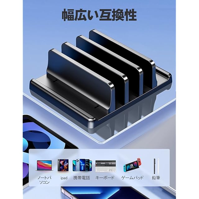 商品名:VAYDEERノートパソコンスタンド 縦置きノートpc スタンド 3台収納 ホルダー幅調整可能 ABS樹脂製 for タブレット/ipad/Surface/MacBook Pro Air 縦置き用 -ブラック