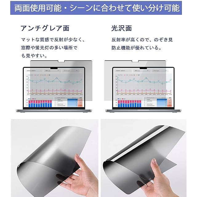商品名:MacBook Pro 14 覗き見防止フィルム (2021-2024, M1,M2,M3,M4) 覗き見防止フィルム 保護フィルム プライバシーフィルター マグネットタイプ ブルーライトカット 反射防止 アンチグレア キズ防止 両面使用 着脱簡単 Mamol