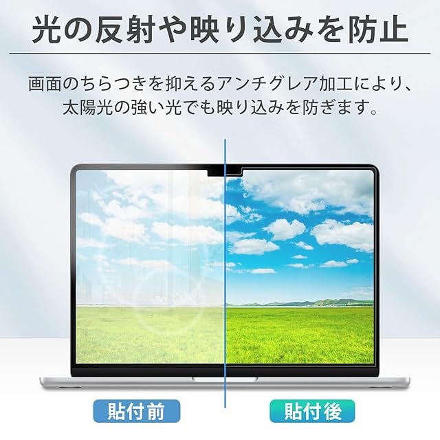 商品名:【2点セット】 アンチグレア MacBook Air 13.6インチ 2025 M4 /M3/M2チップ 用 フィルム ブルーライトカット 保護フィルム マックブックエアー 13インチ 2024 2022 反射低減 指紋防止 抗菌