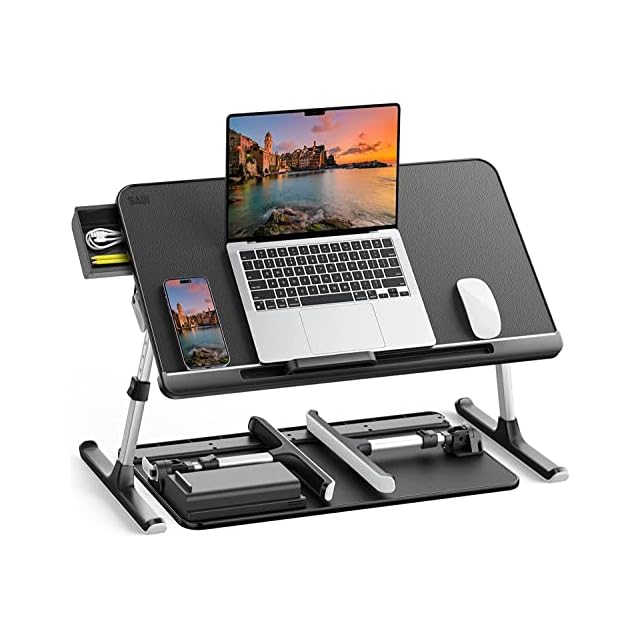 商品名:SAIJI ベッドテーブル ベッド デスク ラップデスク 折りたたみテーブル ミニテーブル「安定性強化版」ローテーブル ベッド机 ノートPCパソコンテーブル ちゃぶ台 角度 高さ調整 引き出し付き 40kg荷重 脱着不要 表面PVC加工 軽量 勉強 子供食事 K7-M (ブラック,60*32cm)