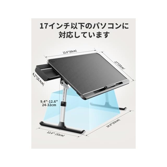 幅広い使用範囲:17インチまでのノートPC使用に最適な折りたたみ机、橇のような脚でベッドの上にスムーズに移動し、ソファーやカーペットの上でも勉強やホームオフィス、読書、ゲームなどの作業が快適に。