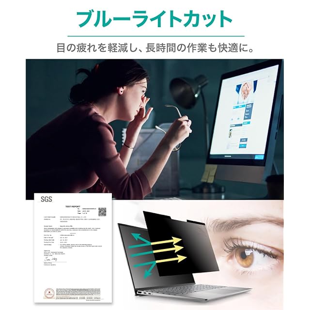 [ ブルーライト半減 ] 私たちが子供の頃にはなかったノートパソコンのスクリーンから発せられる青色光。 毒性の強いブルーライトは眼精疲労や体内リズムへの影響が益々懸念されています。 本製品は覗見防止効果を有しながら、ブルーライトを約50%低減。将来のことを考えるならブルーライトカット対応フィルムがオススメです。AG面は反射率5.8%とアンチグレアで光の映り込みもほとんどありません。