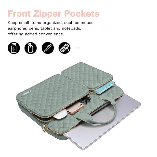 商品名:MOSISO 360 保護 PCケース 13インチ、13インチ ラップトップバッグ 対応機種 MacBook Air M4 M3 M2 M1/Pro M2 M1、2つポケット & 取っ手付 & ベルト付き 正方形 キルティングバッグ(レトロ グリーン)