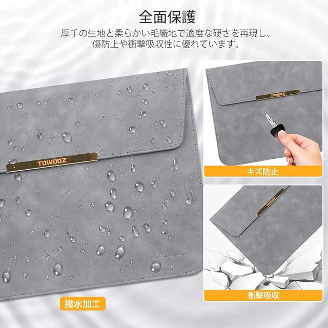 【優れた保護性能】ケースは3層の高品質な素材を使用し、厚手の生地と柔らかい毛織地で、傷防止や衝撃吸収性に優れています、日常的なぶつかりや落下からデバイスをしっかり守れる、耐久性にも優れて、より長くお持ちできます。商品の表面は水が浸透しにくい材質を採用し、水が付けても、簡単に拭き取れます。