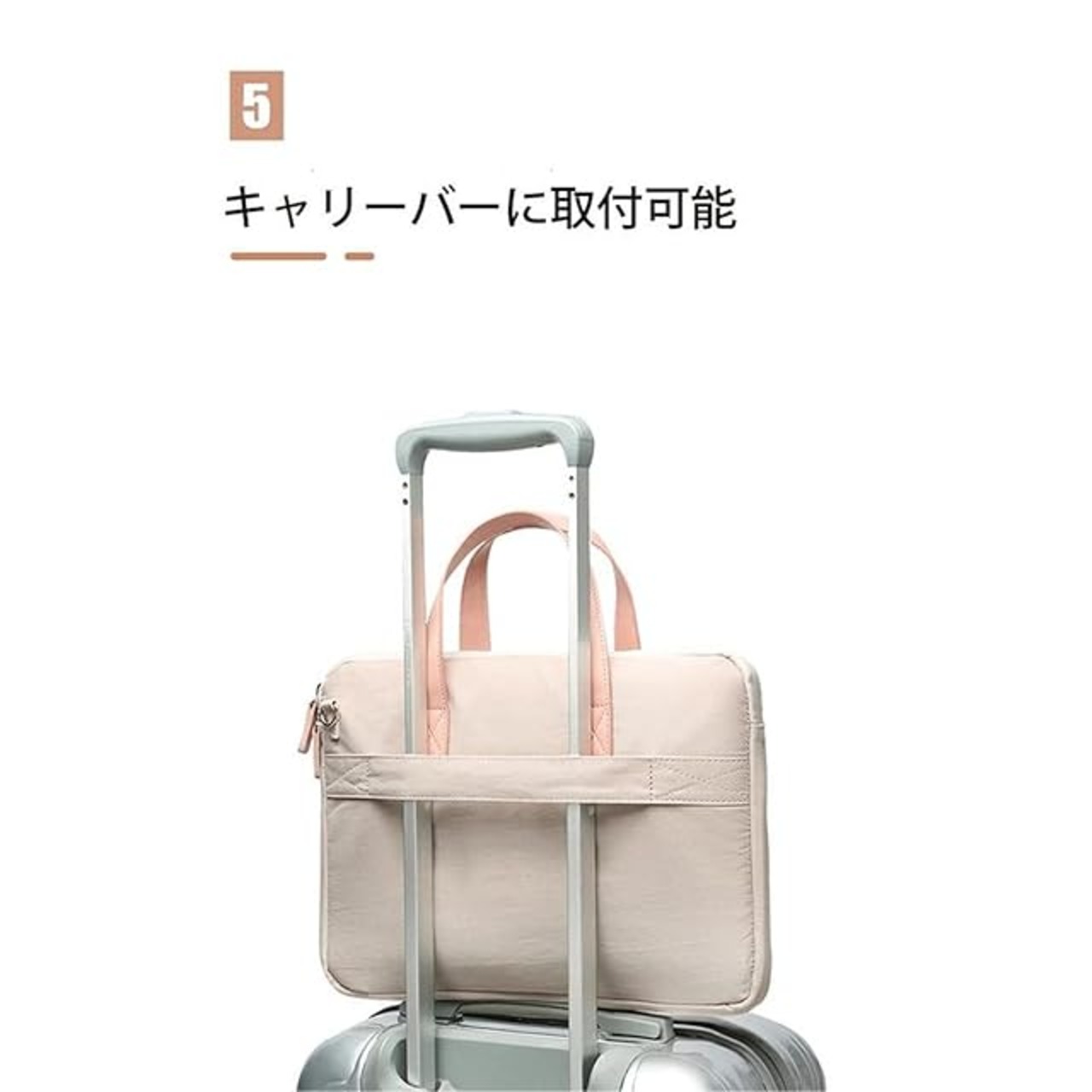 【軽量と便利】:取っ手が付いて持ち運びに便利なノートpcバッグ。背面に固定用の帯を付き、キャリーケースにも取り付け可能なので、旅行や出張にも便利です。