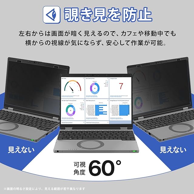 ◆【覗き見防止】レッツノート CF-SRシリーズ パソコン画面の正面を中心に60°より外の角度からは画面が真っ黒に見える為、新幹線での移動中や出張先でも周りからの視線を防いで安心してパソコン操作ができます。