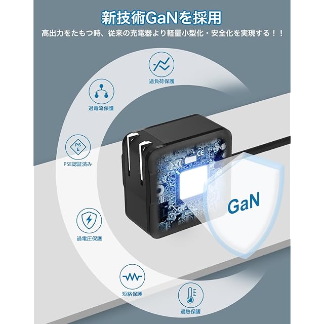 Dellと互換性のあ 65W USB-C ACアダプター PD Gan充電器 ノートパソコン互換用充電器 PPS/PD 対応 USB Type-C PD 急速充電器 20V 3.25A 65W ノートPC 用 ACアダプター 折畳式プラグ 65W type-c acアダプター 45W USB-C ACアダプター 45W 互換性あり <br><br> <b>▼対応機種▼</b><br> Compatible with Latitude 11 12 13 14 15 17 Series; Latitude 3000 5000 7000 Series.<br> XPS 13/12/11 Series: XPS 13 9350 9360<br> Vostro 3000/5000 Series<br> Chromebook Series<br> Inspiron 5000/7000 Series: 7400<br><br> Latitude 3380 3120 3300 3520 3390 2-in-1 3500 3400 3310 2-in-1 3310 3320 3510 3550 3410 3301 3420;<br> Latitude 5410 5520 5285 2-in-1 5289 2-in-1 5179 2-in-1 5290 5290 2-in-1 5490 5510 5420 5580 5500 5400 5300 2-in-1 5300 5590 5179 2-in-1 5310 5480 5320 2-in-1 5300;<br> Latitude 7275 7290 7380 7310 7400 7410 7389 7480 7368 7285 7370 7320 7390 7390 2-in-1 7280 7200 7200 2-in-1 7490 7420 7420 2-in-1 7520.<br> XPS 12 9250 9Q23 9Q33 L221X;<br> XPS 13 9300 9305 9310 9360 9365 2-in-1 9370 9380 9350 7390 9250 7390 2-in-1 9365 2-in-1;<br> XPS 15 9550 9560.<br> Chromebook 3100 5300 5190 2-in-1 7486 3100 3400 3380.<br> Dell-Inspiron 5280 2-in-1 5482 2-in-1 7400 7415 2-in-1 7590 2-in-1 7306 7490 5310 5280 7390 2-in-1 5482 5410 7378 2-in-1.<br> Vostro 3459 5590 3458 5310 5410 5490 5459 3558.<br> <b>対応P/N</b><br> 689C4, 492-BBUU, LA45NM150, HDCY5, 0HDCY5, DA30NM150, 8XTW5, 08XTW5, ADP-30CD BA, 24YNH, 492-BBSP, 5FX88, 470-ABSF, 02YK0F, 0M1WCF, 0JYJNW, LA65NM170, HA65NM170,DA65NM170, LA65NM190, <br>HA45NM170, HA30NM150, DA45NM170, LA45NM171, DA30NM150, LA45NM150, DA65NM190, AA45NM150, 492-BBUU, 470-ABSF, ADP-30CD, <br>689C4, HDCY5, F17M7, F17M7, 02CR08, 08XTW5, 493-0F17M7, 0HDCY5, 8XTW5, TDK33, 24YNH, 02YKOF, 5FX88, 2VP8G, 2YKOF, 0TDK33, LA65NM170, 2YKOF, 02YKOF. ▼マルチ保護システム 最新のICチップを採用し、インテリジェントコントロール、安定した高速出力を実現します。<br>過電圧、過電流、過熱、および回路のショートを防げ、パワフルかつ安全な充電を提供できます。<br>既に日本の電気用品安全法(PSE)認証を取った、本製品は耐火PC素材を使用し、認証された多重保護機能により、充電器自体とデバイスを保護でき、充電をもっと安全となります。