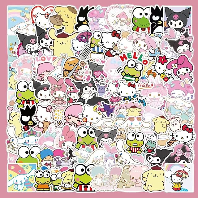 For サンリオ ステッカー100枚セット かわいい漫画ご褒美シール かわいいDIY 防水シール 素材 ギター 車 自転車 水筒 DIVステッカー、誕生日プレゼント、お正月プレゼント