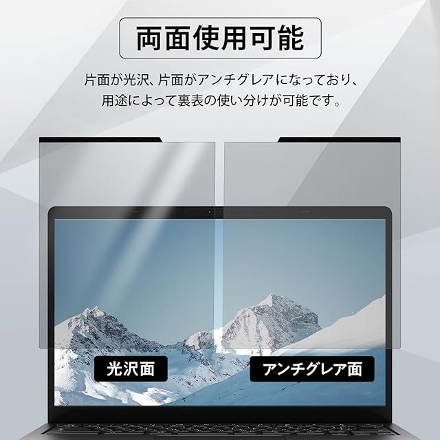 【両面使用】フィルターの片面はアンチグレア(反射防止)、もう片面は光沢仕様となっています。太陽光や照明など光による反射を防ぎ、映り込みを軽減したい方はアンチグレア面を使うなど、必要に応じてお好きな面をご使用ください。 【画面保護】硬度は3Hなので、擦り傷や切り傷からパソコンの画面を守ることができます。