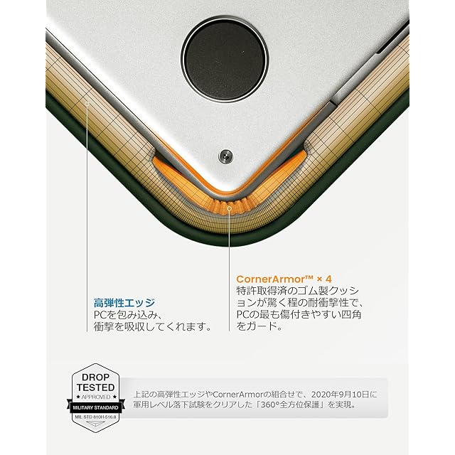 【信頼できる優れた保護力】ケースの四角に特許取得済みの「CornerArmor」ゴムクッションを配し、最も厳しい状況でもMacBookを守り、移動中の落下や衝撃に対して耐久性があります。内装に、環境に優しいエコ生地はフランネルのようにふわふわで、クッションパッドも入り、地球の優しい歌とともに無類の保護力でデバイスを保護します。