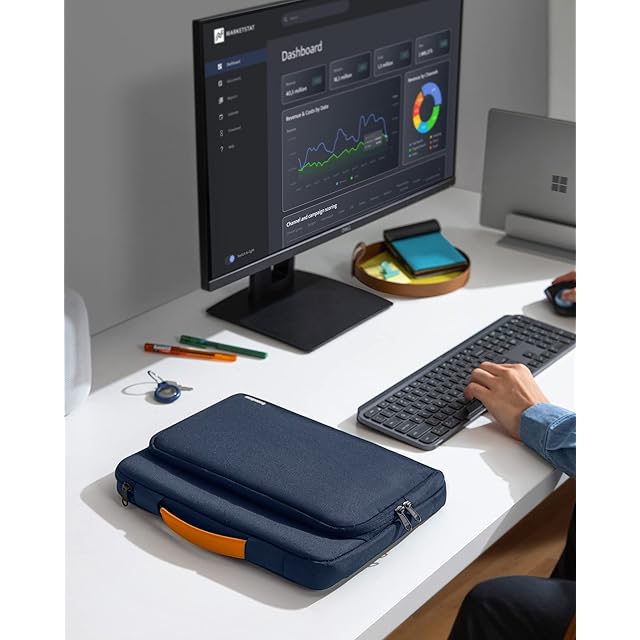 【品質や機能の両立】バッグの寿命が基本的にファスナーや生地で決められます。tomtocケースは耐久性に優れたYKKファスナーを採用し、開閉もよりスムーズで、長持ちです。それに加え、耐摩耗性に優れて手触りの良いPUレザー取っ手、ベットボルトを再生利用した耐久性や撥水性を備えたエコ材表地、柔らかいフランネルの裏地は予想以上の品質を実現。tomtoc製品は全て12ヶ月間安心付きます。