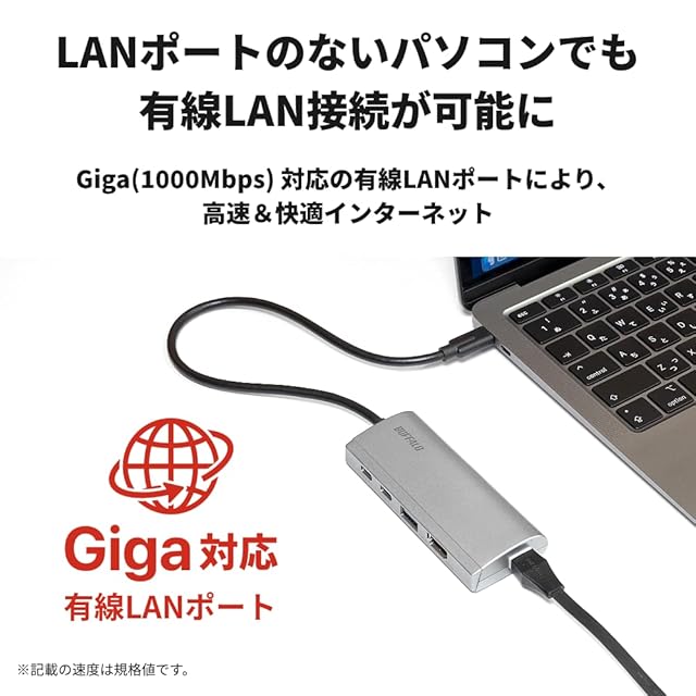 商品名:バッファロー ドッキングステーション 5-in-1 USB Type-C PD HDMI LANポート USB 3.2 (Gen 1) 85W Power delivery iPhone 16 対応 シルバー LUD-U3-CGHDSV/N
