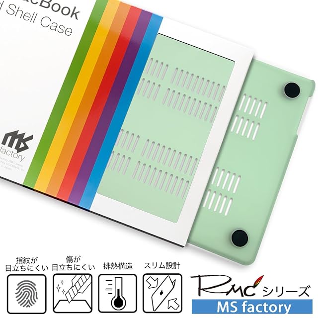 【MS factory(R) RMC Series 正規品】<br> MacBookを保護しながらカラフルにコーディネート出来る商品です。<br><br> <b><対応モデル><br> ・ MacBook Air15インチ M4チップ 搭載 2025年モデル ( モデル番号: A3241 )<br> ・ MacBook Air15インチ M3チップ 搭載 2024年モデル ( モデル番号: A3114 )<br> ・ MacBook Air15インチ M2チップ 搭載 2023年モデル ( モデル番号: A2941 )</b><br><br> MacBookを傷から守る為にしっかりフィットした設計になっておりますので、<br> 装着時にはツメをしっかりと押しはめるようにして頂くときれいに装着する事が出来ます。<br><br> ~カラーに関するご注意~<br><br> ●2016年以降発売のMacBookは背面のAppleロゴマークが光らない仕様になっていますので、<br> ミントブルーのケースではAppleロゴマークは透けません<br> (ブラック・ネイビーも色が濃い為、他のカラーより少し透けづらくなっております)<br><br> ----------------------------------------------------------------------------------------<br> ●商品の特性上、郵送による擦り傷等がある場合がございます。予めご了承お願い致します。<br> ●輸入品のため多少の傷・汚れはご了承下さい。<br> ----------------------------------------------------------------------------------------<br> <br><br> 商品画像、商品説明、MS factoryのブランド名及びロゴなど当サイトのいかなるコンテンツも無断使用、転用は固くお断りします。<br>