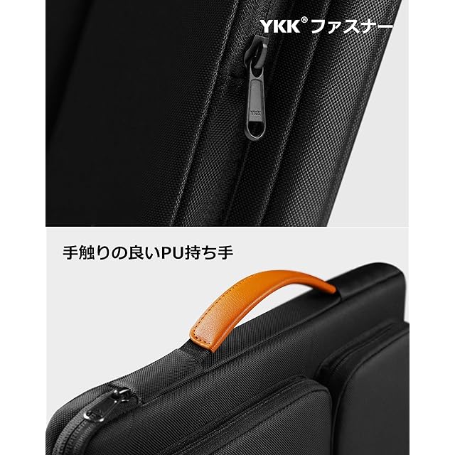 【スマートな3室サブ収納】このノートPCケースは二つ大きなフロントポケットが備え、その中に多数な小さいポケットやAirTag /鍵掛用ストラップを配します。電源、ケーブル、ハブ、Kindleなどのガジェットをすっきり収納できます。それに加え、背面にも大きなポケットがあり、書類やよく取り出す物の収納に適します。