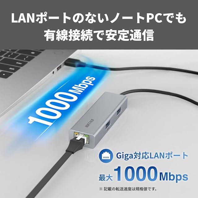 【有線LANで安定通信】Giga対応LANポートを備え、LANポートのないパソコンでも有線LAN接続が可能に