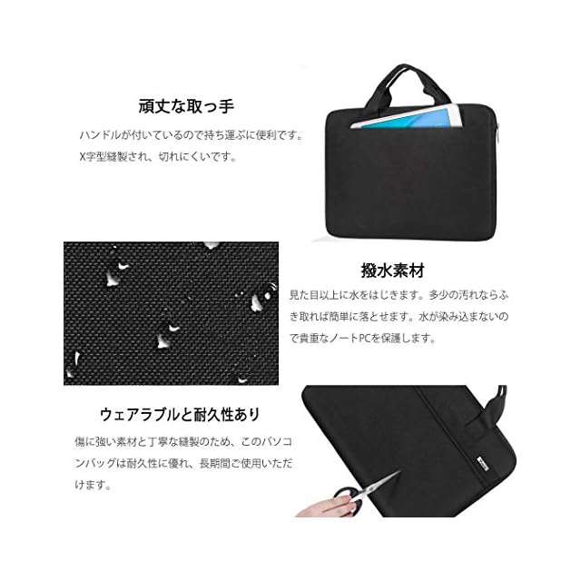 ❤『360°保護』➤メインポケットのシッパーの周りに保護パットあり、パソコンへの傷を防げます。ポリエステル繊維の層と柔らかい裏地で衝突を吸収し、内部はクッションが内蔵して衝撃からのダメージを軽減し、貴重なPCをしっかりと守ります。➤パソコンバッグの表面は防水素材を採用し、汚れにくい、突然の雨水でも、お茶やコーヒーなどをこぼされても、パソコンをしっかり守れます。