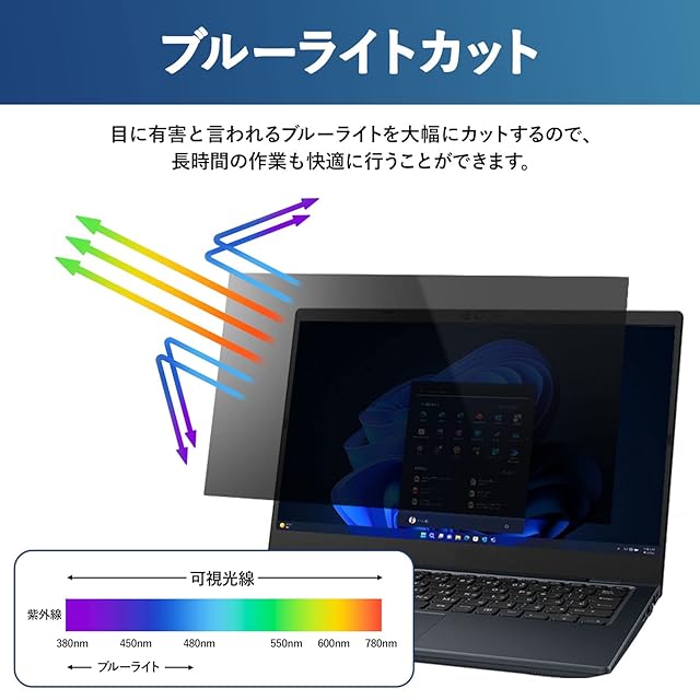 商品名:16インチ 16:10 覗き見防止 フィルター ブルーライトカット 紫外線カット 反射防止 両面使用可能 静電気防止 プライバシーフィルター