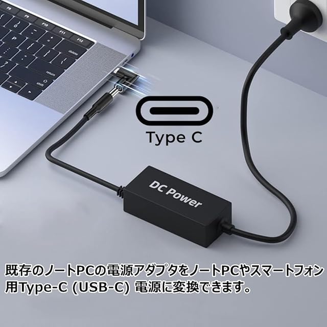 既存のノートPC電源アダプタをノートPCやスマートフォン用Type-C (USB-C) 電源に変換できます。
