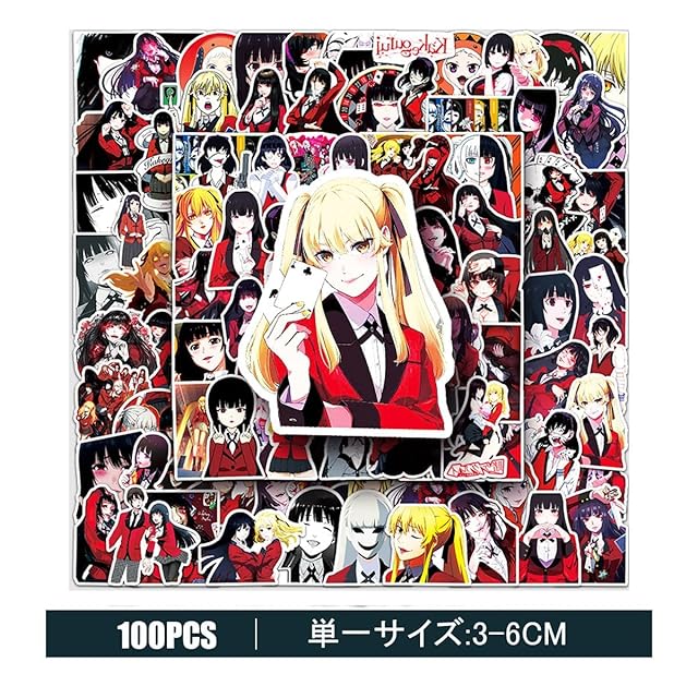 商品名:100枚 賭ケグルイステッカーセット 防水シール DIY アニメ PVC手帳デカール 自転車 水筒 ヘルメット スーツケース 適用