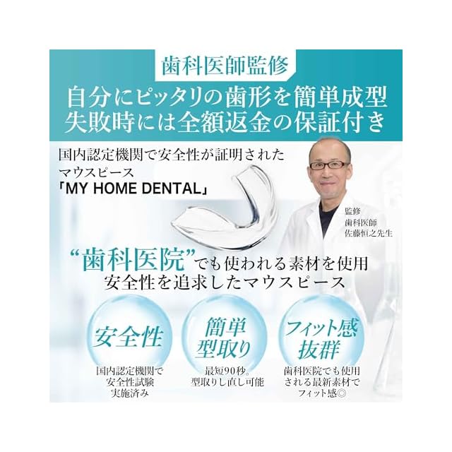 商品名:【歯科医師監修の安心素材マウスピース】90秒3ステップの簡単型取り 歯科材料EVA使用 専用ケース付 ナイトガード マウスガード 睡眠用 MY HOME DENTAL (4個)
