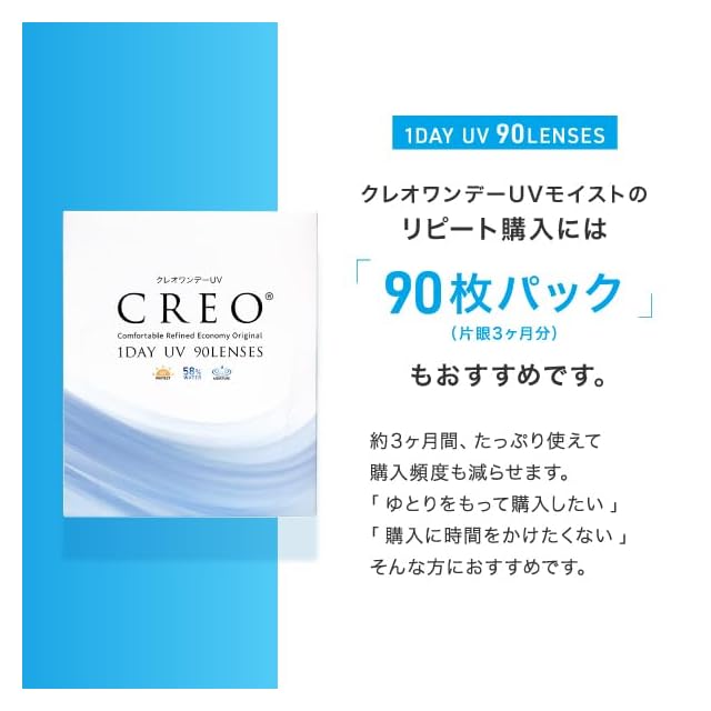 商品名:クレオワンデーUVモイスト 30枚 1箱 (1日使い捨て コンタクトレンズ )【高含水】【BC】8.7 【PWR】-3.75 高含水 うるおい UVカット フィット感
