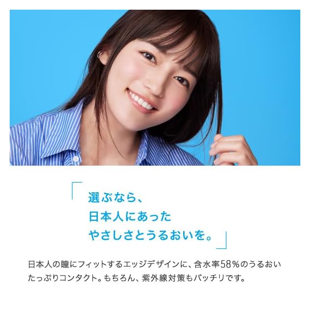 含水率58%で瞳にフィットする高コスパのコンタクトレンズ。 紫外線をカットする紫外線吸収剤配合で瞳の紫外線対策にも。 ※コンタクトレンズは高度管理医療機器です。取り扱い方法を守り正しくご使用下さい。