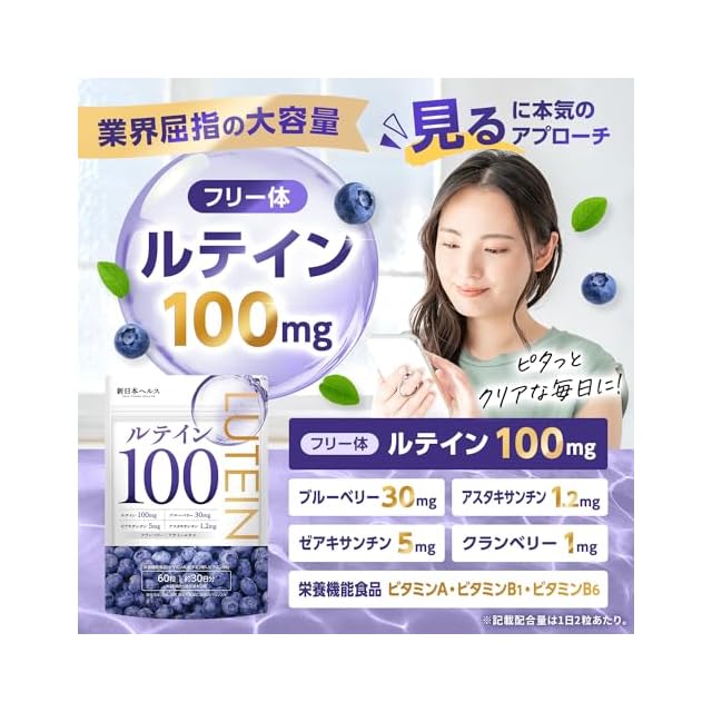 【トップクラスの配合】ルテイン100mg配合。業界屈指の大容量で「見る」に本気のアプローチ!