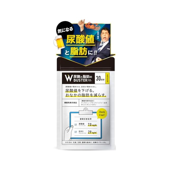 商品名:【髙田延彦愛用×医師監修】ロカボワークス 尿酸と脂肪のダブルバスター(約30日分)尿酸値と脂肪を下げる 日本製 ブラックジンジャー アンセリン 尿酸ケア 機能性表示食品 タブレット (1セット)
